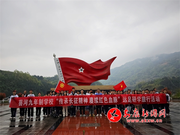 本網(wǎng)訊(通訊員 汪明志 張磊)4月1日,石泉縣喜河九年制學(xué)校組織100余名初中部師生徒步赴喜河鎮(zhèn)紅色文化廣場開展研學(xué)活動,通過徒步拉練、瞻仰紀念碑、學(xué)唱紅歌、重溫誓詞,追尋紅色足跡,緬懷革命先烈,磨煉意志品質(zhì),堅定理想信念,汲取奮斗力量,爭做新時代好青年。