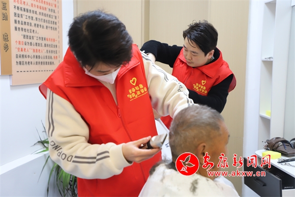 通訊員 王博“ 阿姨,您看下,想剪個啥樣的發(fā)型?”“ 叔叔,剪好了,再去那邊沖洗一下……”“大家莫急,排好隊,都能剪到的……”在……