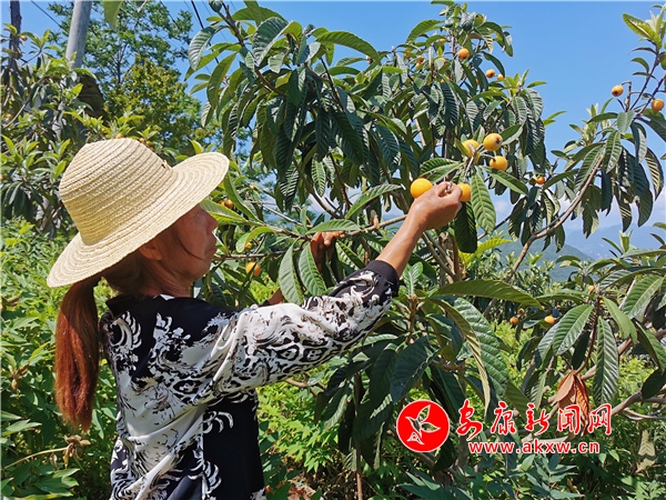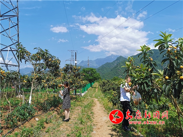 果農(nóng)們正忙著采摘、包裝、發(fā)運,臉上寫滿了豐收的喜悅。果農(nóng)楊作芳正在地里采摘枇杷,只見她左手挎著果籃,右手抓住枝丫,熟練地將一顆顆枇杷摘下來,看到品相特別好的,她就拿起來展示一下,“你看這幾顆又大又圓,熟透了,絕對特別甜。”她從2016年開始流轉(zhuǎn)自己的土地給合作社種植枇杷,總共種了16畝。“今年的枇杷剛剛成熟,掛果比去年還多。我摘一天給我發(fā)100元工資,枇杷一斤可以賣到10塊錢,等枇杷都賣了,我能穩(wěn)穩(wěn)賺到4萬多呢。”剛從地里采摘完枇杷正在裝箱的楊作芳談及枇杷給她帶來的收益樂開了花。在枇杷園內(nèi)除了果農(nóng)外,也引得不少游人前來觀光采摘。