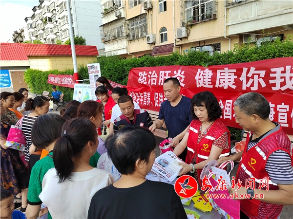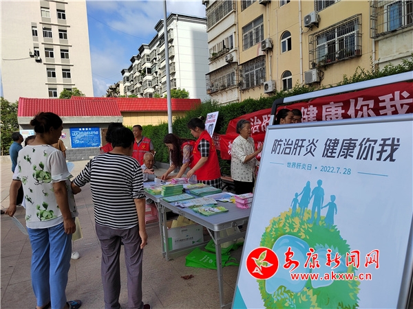 本網(wǎng)訊(通訊員 陳子賢)2022年7月28日是第12個(gè)世界肝炎日,為進(jìn)一步普及各種肝炎的防治知識(shí),提升社區(qū)居民防治意識(shí),增強(qiáng)自我保護(hù)能力。7月28日早上,旬陽市城關(guān)中心衛(wèi)生院聯(lián)合市疾控中心、市健康教育中心走進(jìn)康花園小區(qū)廣場(chǎng),開展“防治肝炎,健康你我”主題宣傳活動(dòng)。