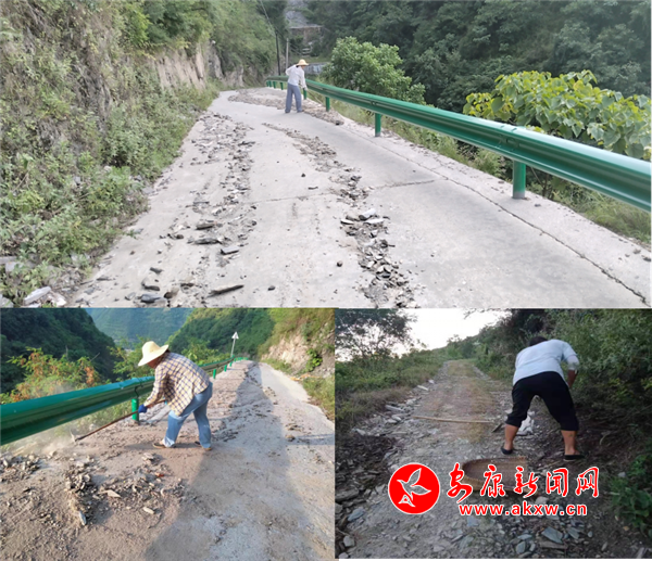 6月下旬,一場暴雨來襲,緩解旱情的同時,又將三組陽在梁(小地名)的通組主干道沖擊損毀,這不僅使三組村民出行困難,更是阻斷了金銀花外銷的交通道路。得知這一情況后,市司法局駐村工作隊和村“兩委”立即組織公益崗對道路進行自救修復。n9J安康新聞網(wǎng)