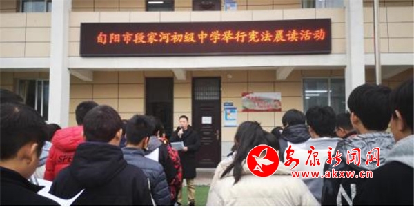 學校里,開展憲法晨讀,全體師生共同參與,同步跟讀憲法條款,讓學生通過學習憲法的基本原則和基本知識,感受憲法精神,體悟憲法威嚴,在校內(nèi)形成“積極宣傳憲法、尊崇憲法、維護憲法,弘揚憲法精神,樹立憲法權威,增強法治觀念”的新風尚。JW5安康新聞網(wǎng)