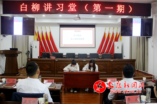 “青”戰(zhàn)擂臺(tái),增“智”促“干”。知識(shí)競賽以接龍問答和雙人對戰(zhàn)的形式開展。雙人對戰(zhàn)環(huán)節(jié)依托“學(xué)習(xí)強(qiáng)國”學(xué)習(xí)平臺(tái),對戰(zhàn)人員個(gè)個(gè)精神飽滿、沉著冷靜,10名參賽人員以扎實(shí)的知識(shí)儲(chǔ)備和機(jī)智精彩的應(yīng)答使得比分不分伯仲。接龍問答環(huán)節(jié),聚焦省委“三個(gè)年”活動(dòng)、旬陽市“3456”工作部署、“一強(qiáng)五好”等內(nèi)容展開,現(xiàn)場隨機(jī)抽號(hào)提問,抽中者快速反應(yīng)、準(zhǔn)確回答,緊張、刺激瞬間將活動(dòng)氛圍推向了高潮。