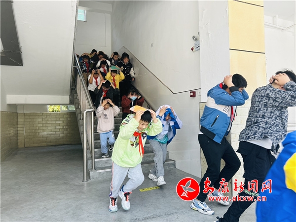 片刻之后,要求師生疏散撤離教學(xué)樓的指令發(fā)出,各班學(xué)生在老師的組織下沿指定路線撤離。行進(jìn)中,大家降低身體重心躬身前行,有的用雙手捂住頭部,有的用書(shū)本遮蓋頭頂,以最快的速度向安全疏散點(diǎn)轉(zhuǎn)移,整個(gè)疏散撤離過(guò)程快速而有序,僅用時(shí)1分40秒,600余名師生便安全撤離至學(xué)校操場(chǎng),實(shí)現(xiàn)了預(yù)期演練目標(biāo)。
