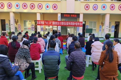 本網(wǎng)訊(通訊員 呂小寧)12月4日,旬陽市段家河幼兒園里熱鬧非凡,來自司法所、派出所、社治辦的工作人員通過問答互動(dòng),向小朋友和家長普及憲法知識(shí),將法治觀念根植于心,并通過一系列和生活息息相關(guān)的法律知識(shí)解讀,提升教職工及家長的法治意識(shí)。