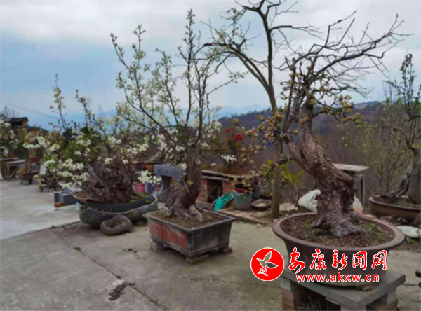 正房的后面有三、四層用磚頭瓦塊砌成的臺階,每層寬約一米,擺放的也是各類盆景、花卉、備用的樹根、嫁接的苗木、花盆等。早春時節(jié),其中兩盆蠟梅頗為別致,色澤鮮艷,含苞待放。